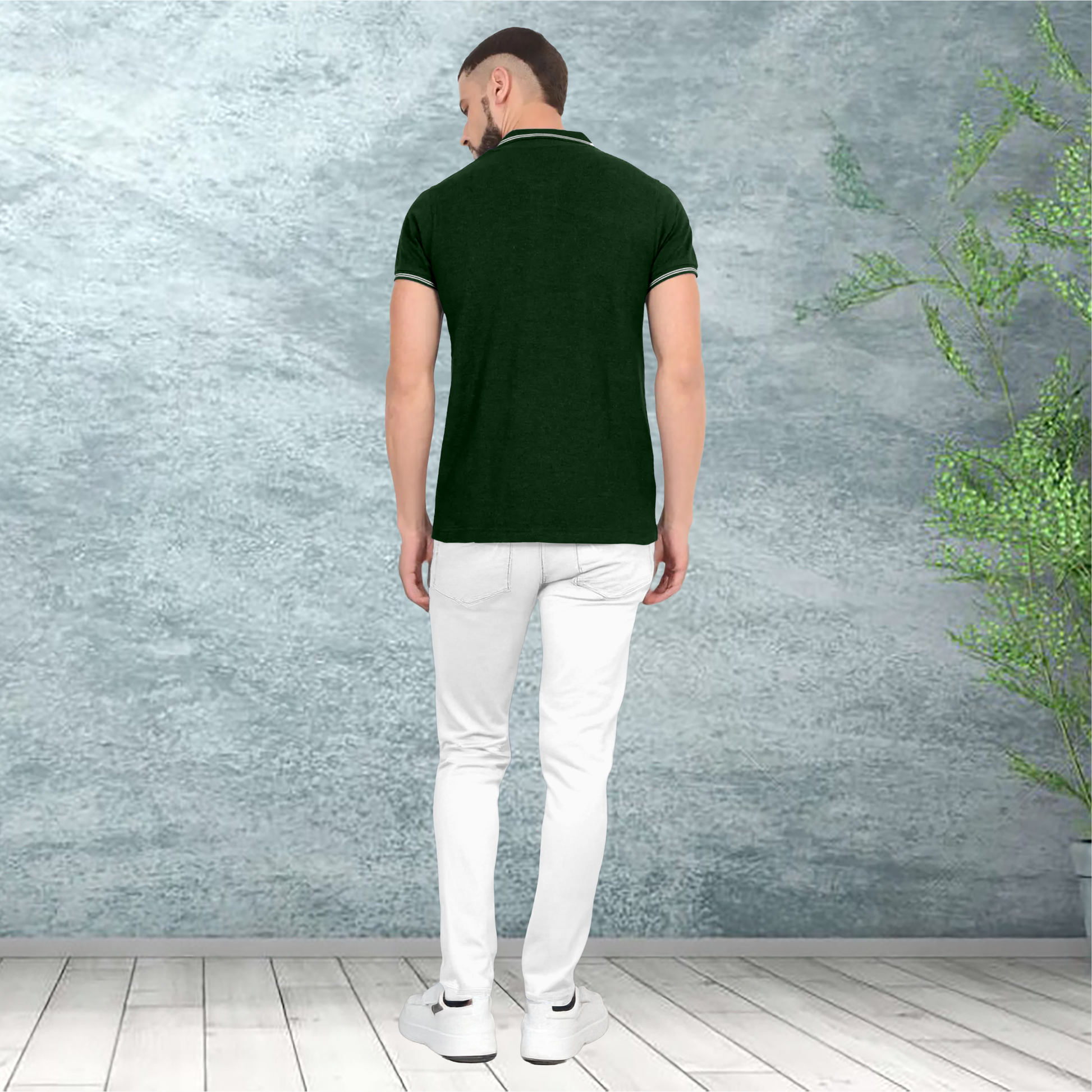 Starling Apparels Tipping Military Green Polo Collar T-Shirt