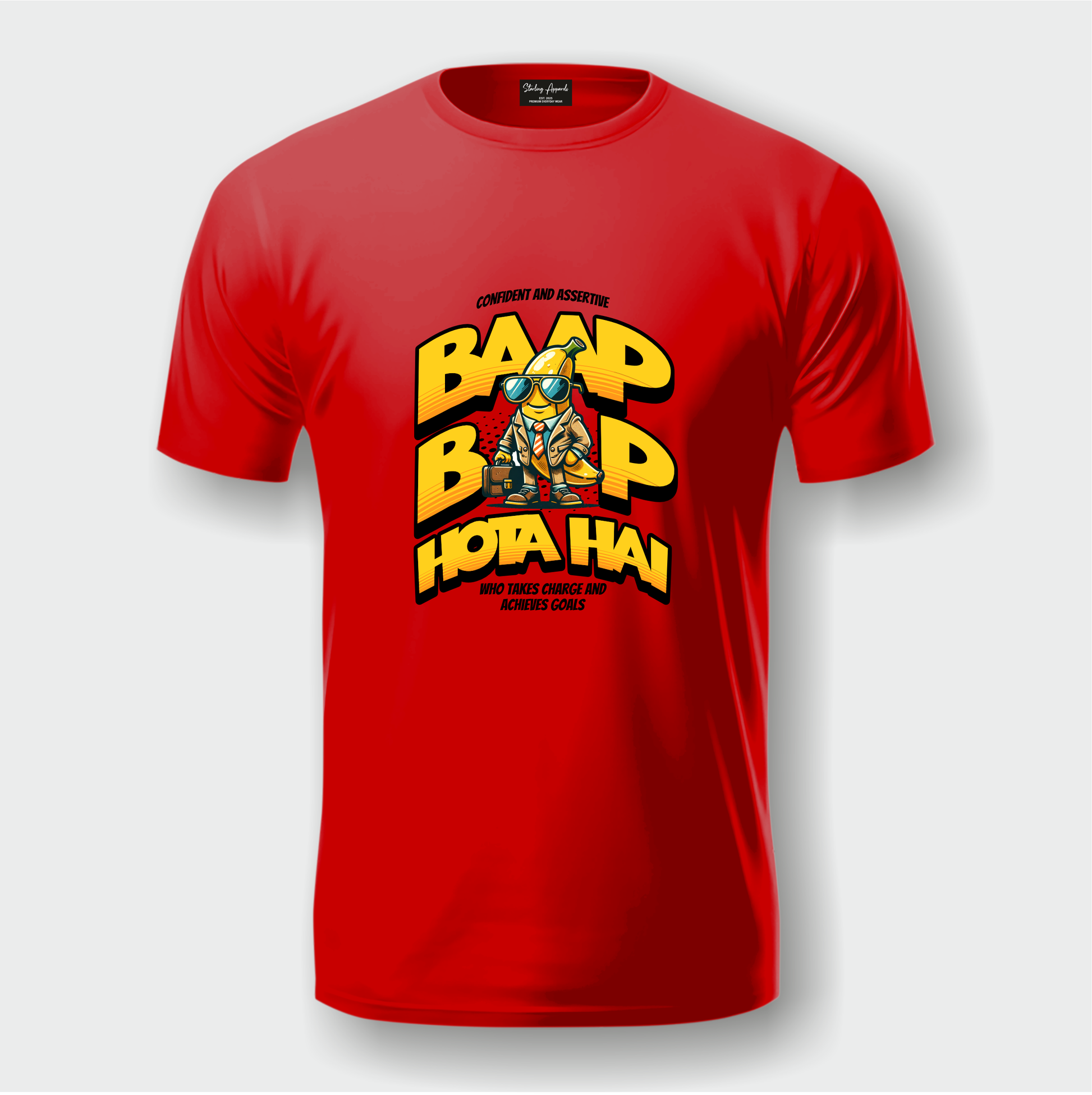 Own the spotlight with the Baap Baap Hota Hai T-shirt from Starling Apparels. Featuring bold yellow typography with a stylish character graphic, this tee is all about confidence, power, and unapologetic attitude. Perfect for those who love to take charge and stand out, it’s more than just fashion—it’s a statement.