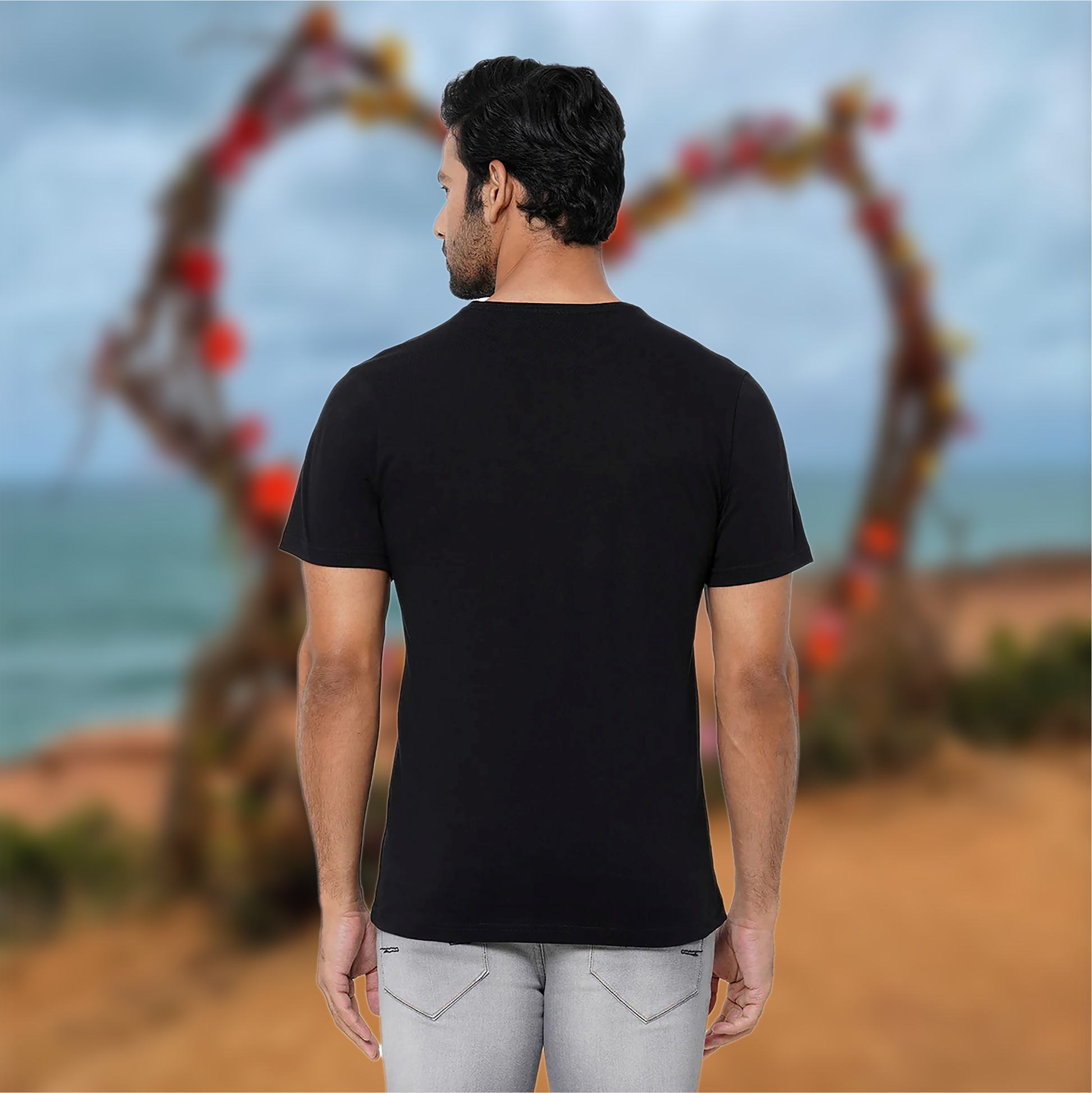 Crafted from premium breathable cotton, this regular fit T-shirt offers comfort, durability, and a sleek finish. The deep black backdrop highlights the vibrant red and white graphic, making it the perfect pick for those who love edgy, statement-making fashion. Wear it for casual hangouts, college days, or evening parties and let your tee do the talking.