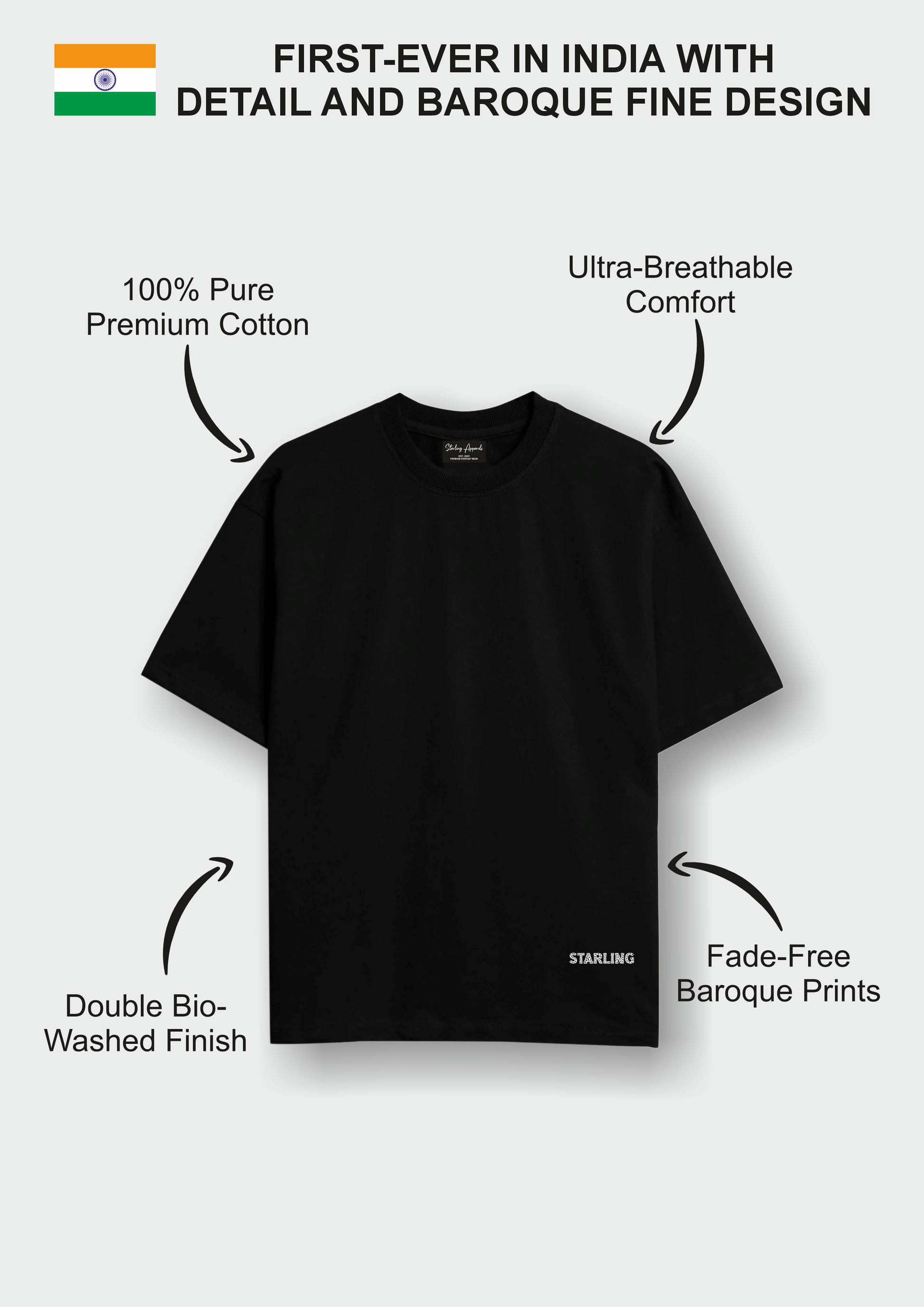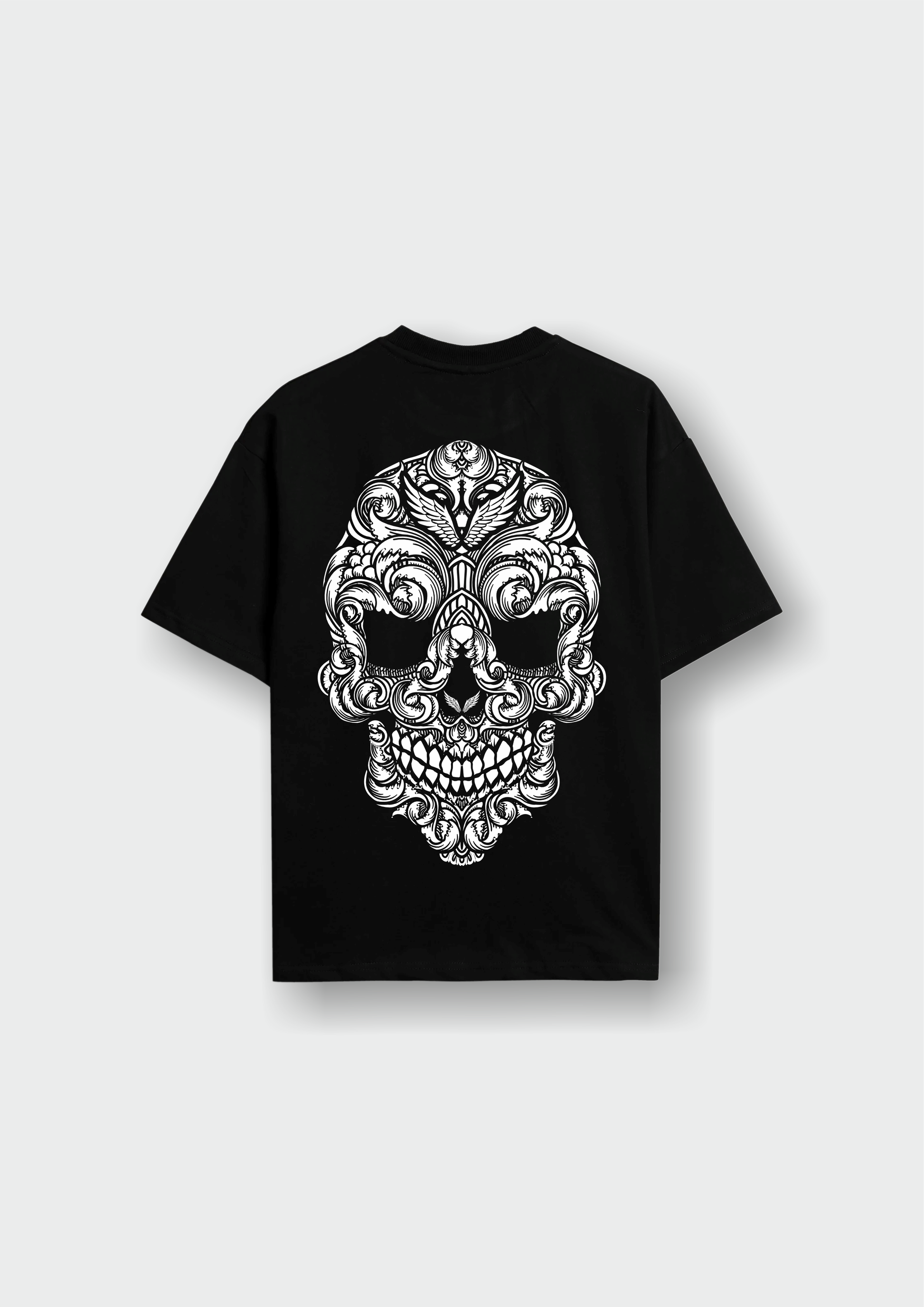 Step into the dark arts of fashion with a graphic that fuses elegance with edge. The Baroque Skull Oversized T-Shirt by Starling Apparel transforms classic baroque flourishes into a hauntingly bold skull design — a wearable piece of art that commands attention.