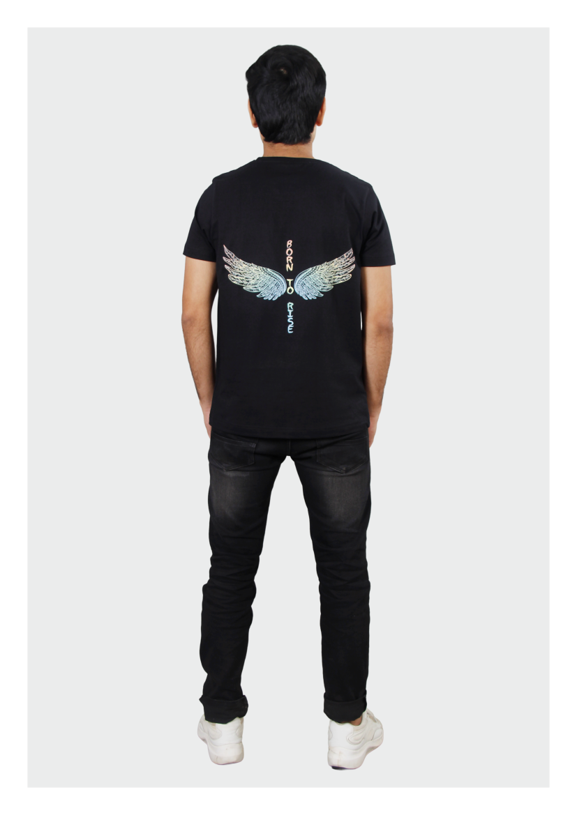 Elevate your essentials with purpose. The Born to Rise Regular Fit T-Shirt from Starling Apparel speaks to those who rise from within — resilient, bold, and limitless. Featuring a clean front chest emblem and a radiant winged graphic on the back, this tee is your personal reminder: your story soars.