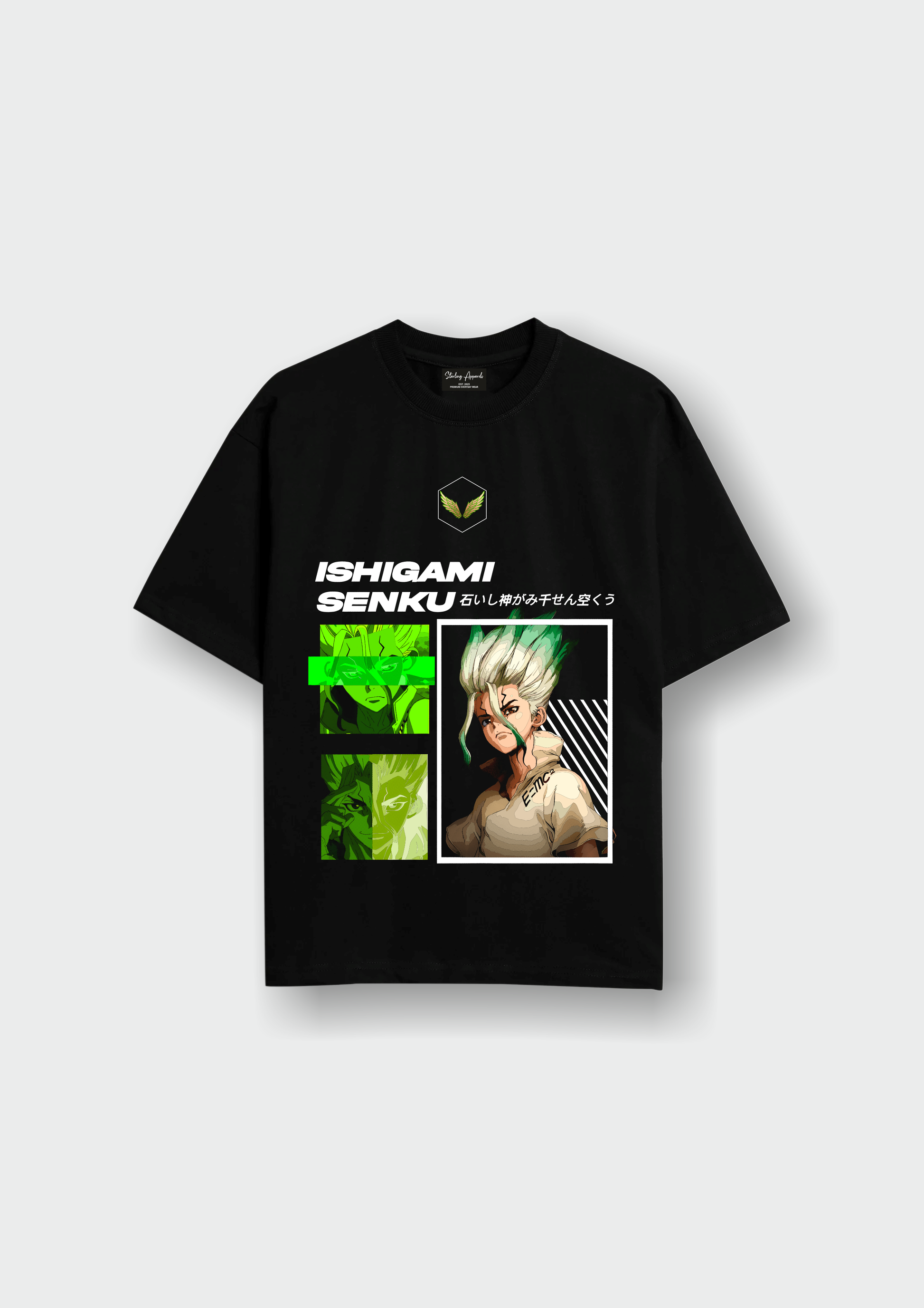 Bring science and style together with the Starling Oversized Ishigami Senku T-Shirt, inspired by the genius scientist from Dr. Stone. This premium oversized T-shirt features a vibrant anime panel design of Senku in striking green and black tones, making it a must-have for fans and collectors of the iconic anime series.