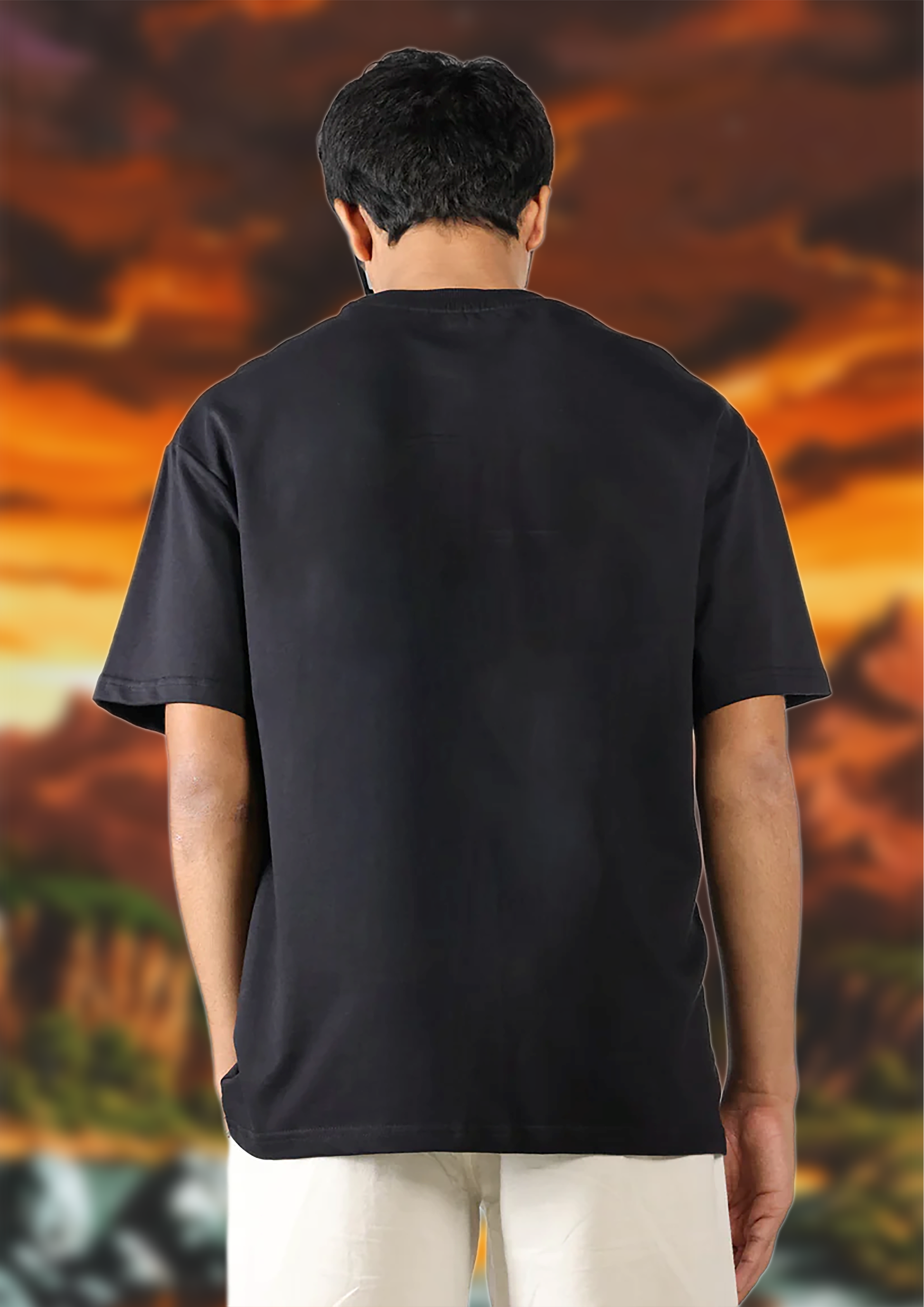 This gender-neutral oversized anime T-shirt is designed for men and women, offering a boxy streetwear fit that suits all body types. Its minimalist yet bold design makes it a versatile choice for both casual and edgy street style looks.
